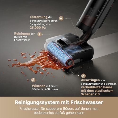 dreame H15 Mix 7-in-1 Nass- & Trockensauger, 23.000 Pa, KI-Roboterarm, 100 °C Bürstenreinigung, 5 Min 90 °C Trocknung, intelligente Dosierung, 75 Min Laufzeit, Schwarz